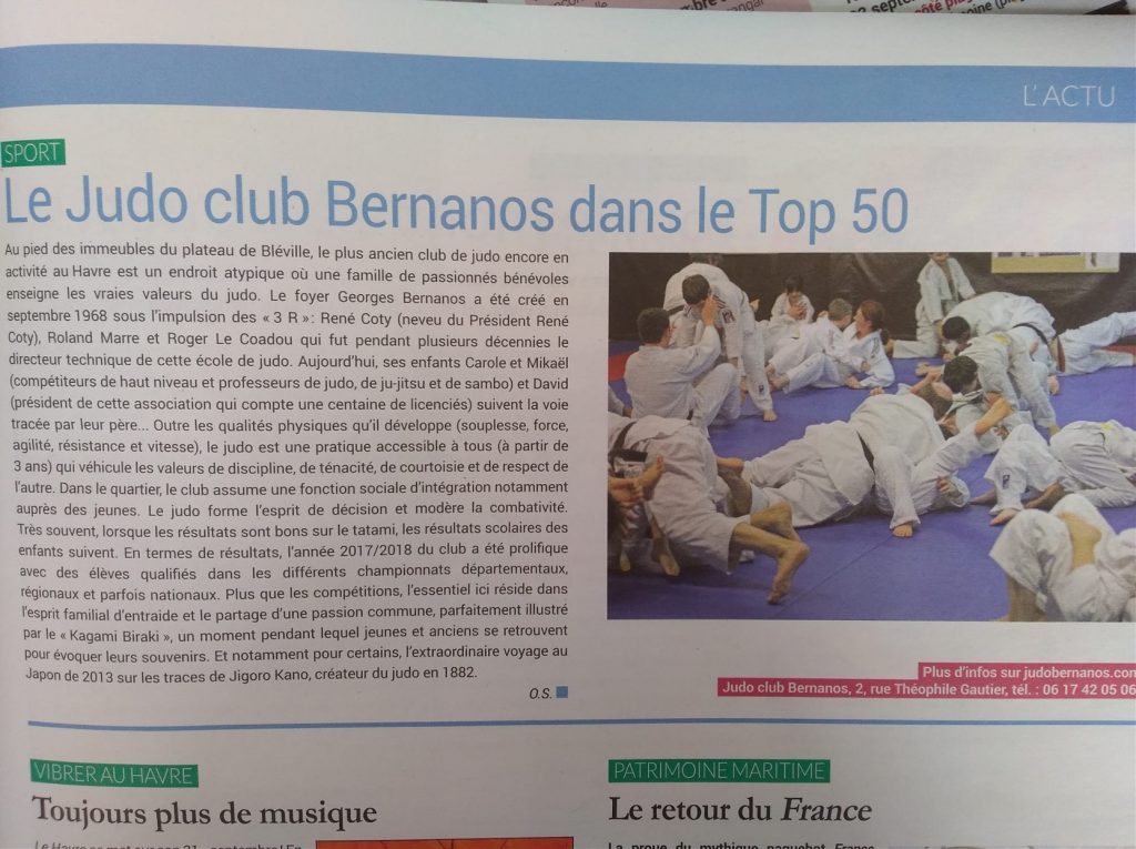 Article – Le Judo club Bernanos dans le top 50 2 septembre 2018 | Aucun commentaire Articles de presse et réseaux sociaux, Évènements